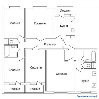 Перепланировка 4-ой квартиры П-30 (с затрагиванием несущих стен)
