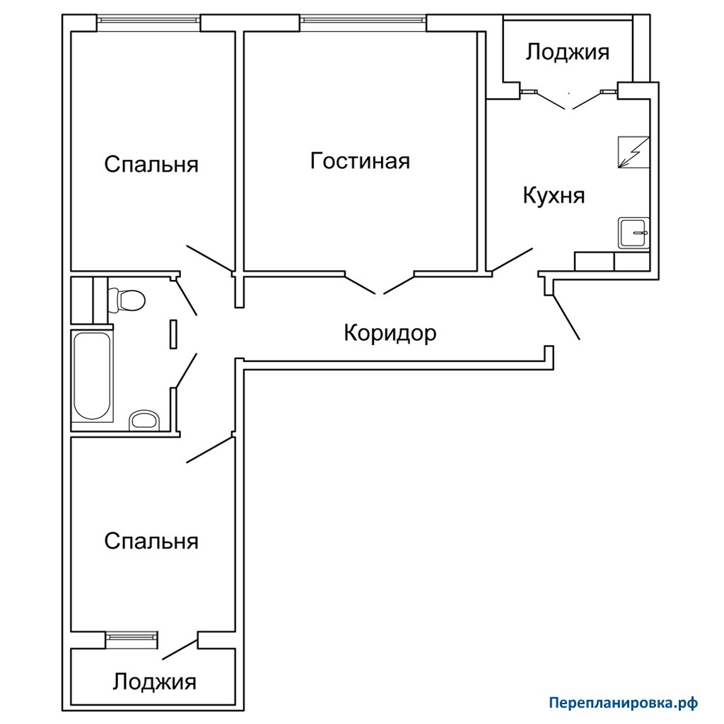 Перепланировка 3-ой квартиры П-30 (с затрагиванием несущих стен)