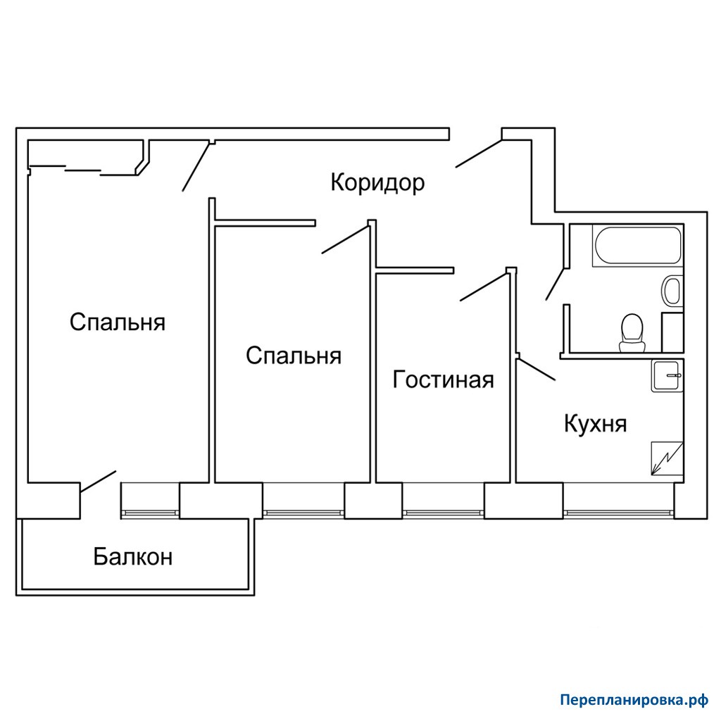 Перепланировка 3-ой квартиры 1-515/9М (без затрагивания несущих стен)