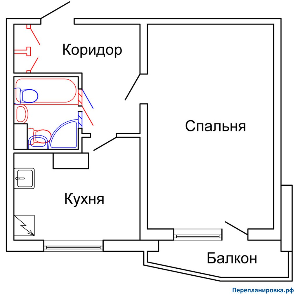 Алгоритм самостоятельного согласования перепланировки однокомнатной квартиры П-44 без затрагивания несущих конструкций: