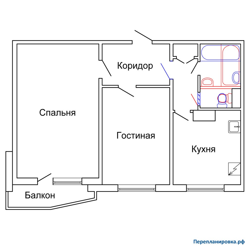Перепланировка 2-ой квартиры (вариант №2) П-44 (без затрагивания несущих стен)