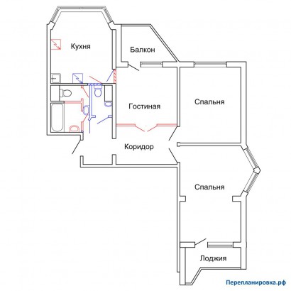 Перепланировка 3-ой квартиры П-44T/17 (без затрагивания несущих стен)