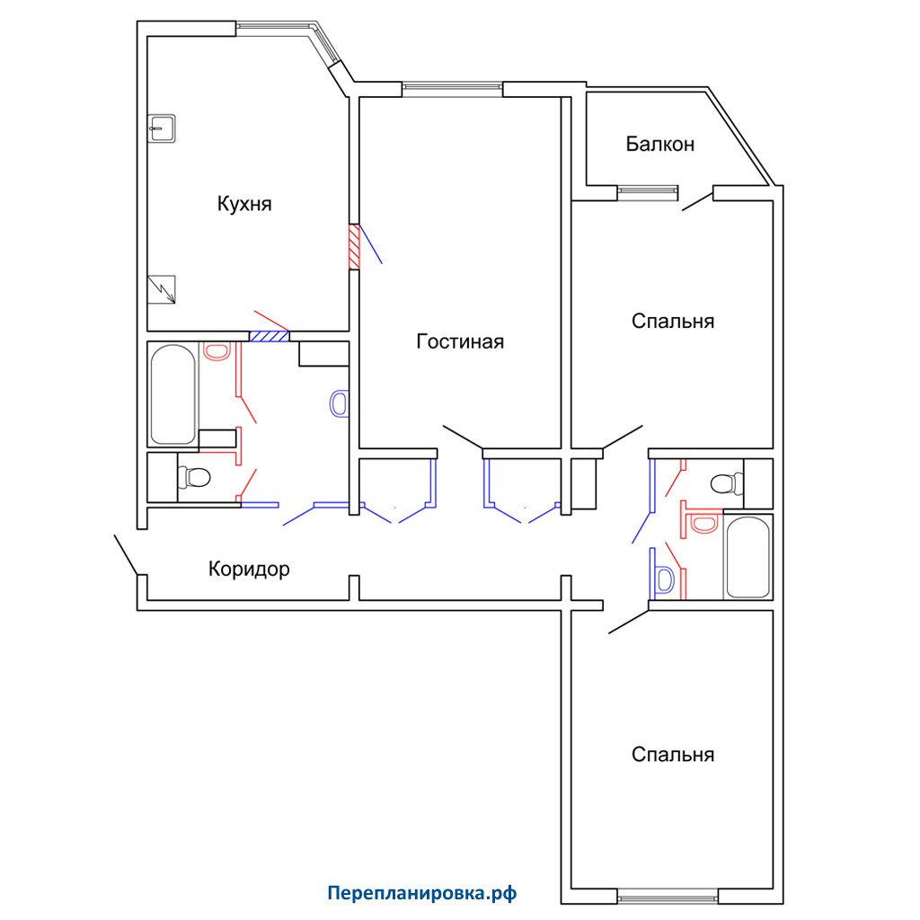 Перепланировка 3-ой квартиры П-44ТМ/25 (без затрагивания несущих стен)