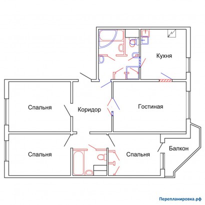 Алгоритм самостоятельного согласования перепланировки четырехкомнатной квартиры ПД-4 с затрагиванием несущих конструкций: