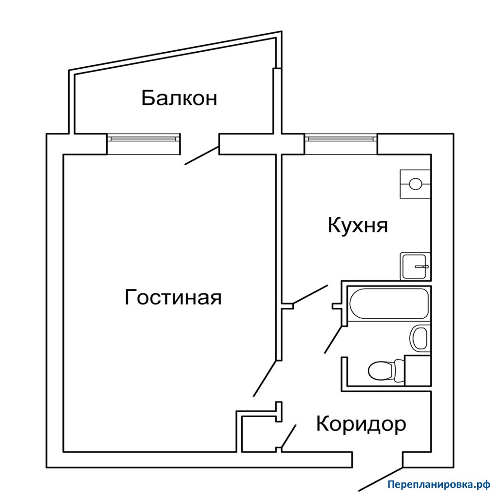 Алгоритм самостоятельного согласования перепланировки однокомнатной квартиры 1-515/9Ш без затрагивания несущих конструкций: