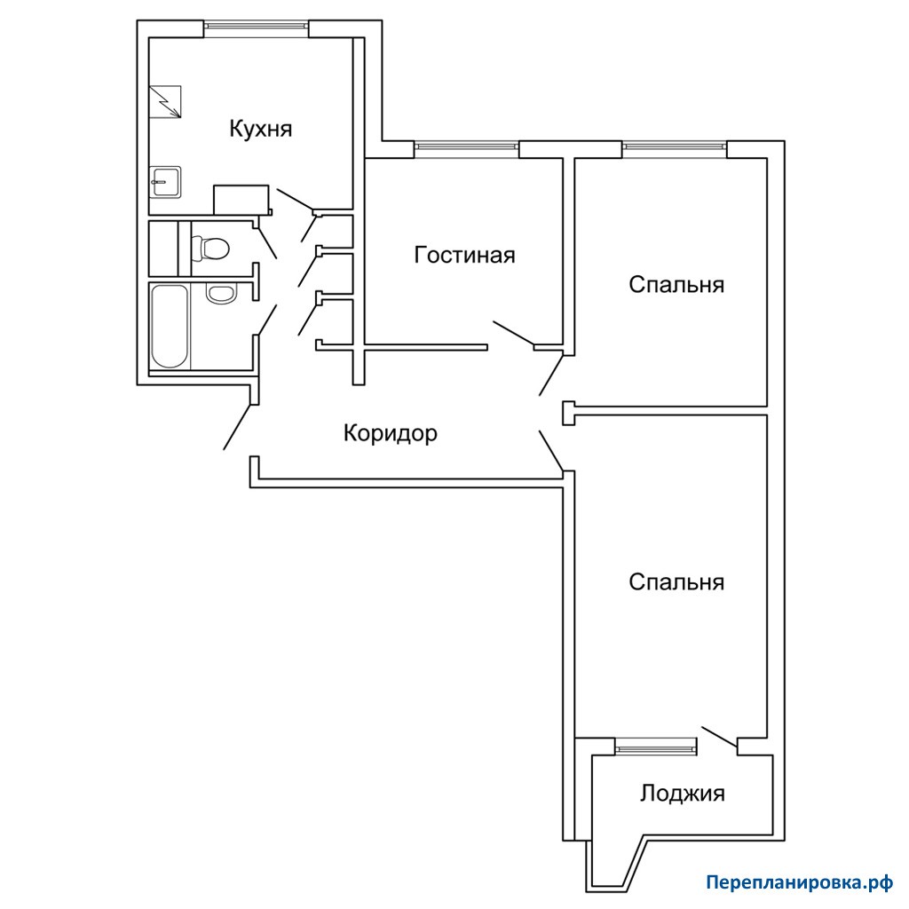 Перепланировка 3-ой квартиры П-44 (без затрагивания несущих стен)