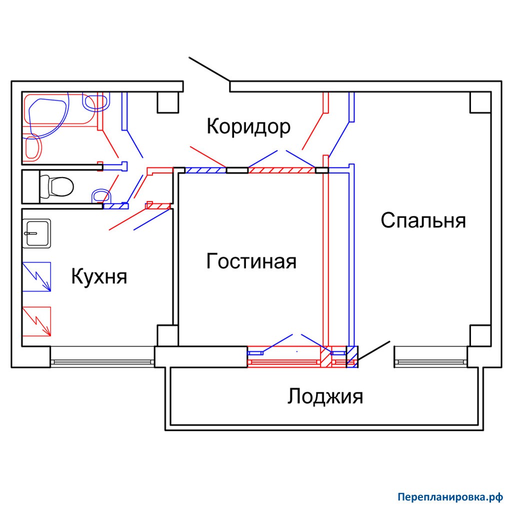Алгоритм самостоятельного согласования перепланировки двухкомнатной квартиры МГ-601 с затрагиванием несущих конструкций:
