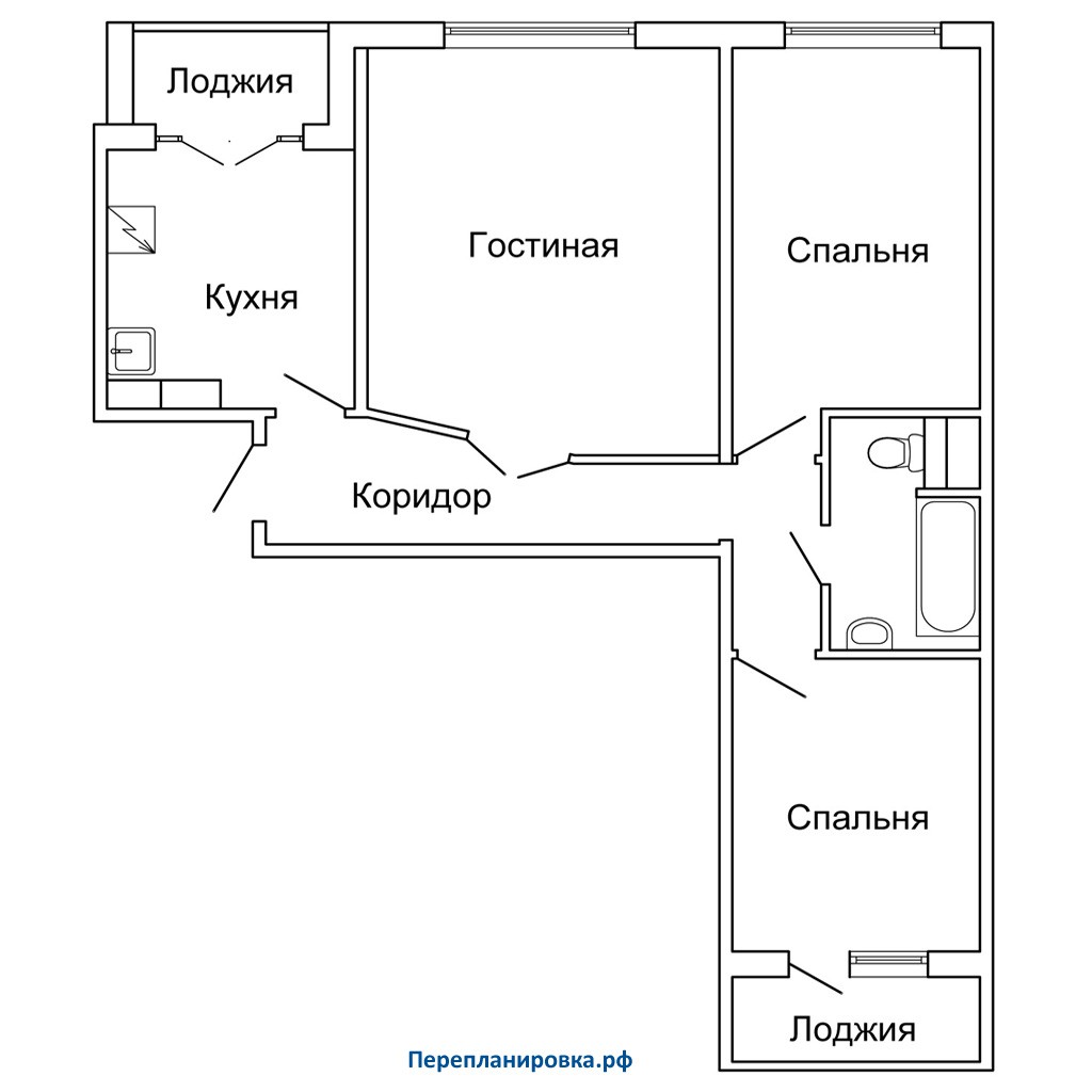 Перепланировка 3-ой квартиры П-30 (с затрагиванием несущих стен)
